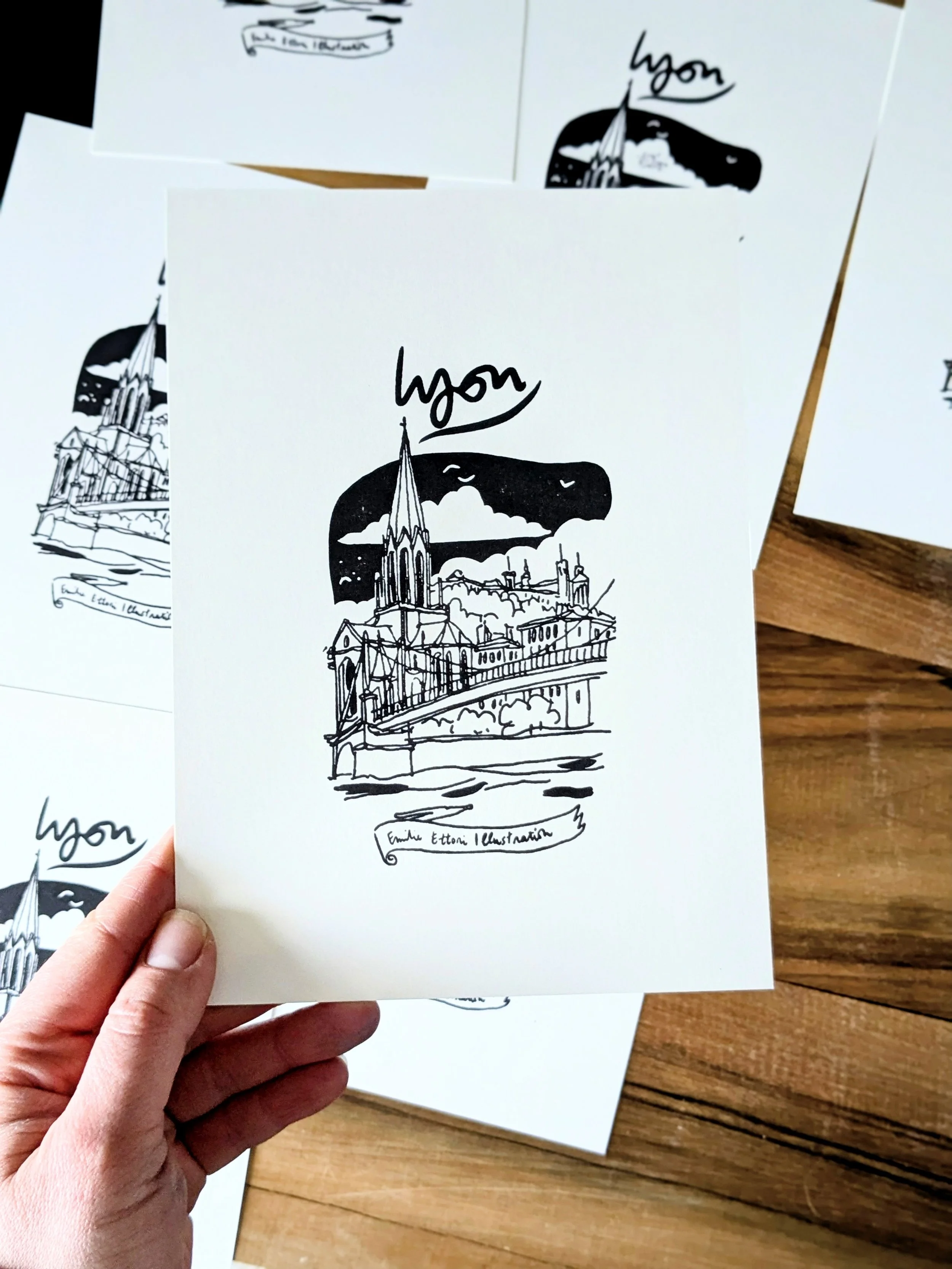 Chaque vue est unique car fabriquée artisanalement à la main par Emilie, de la découpe du papier à la mise en couleurs. De légères variations d'encre et de couleur sont attendues ce qui rend chaque exemplaire unique ! De même, les papiers utilisés sont différents et peuvent varier d’un crème à un blanc chaud. Tous les papiers sont des papiers à dessin épais et de grande qualité.
